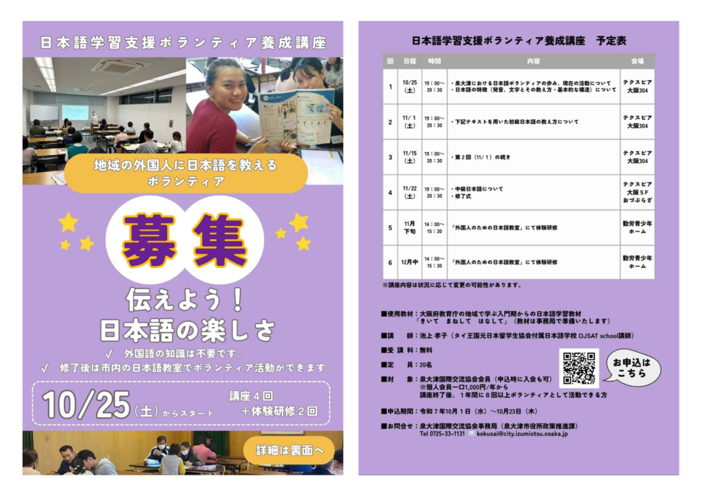 「日本語学習支援ボランティア養成講座」参加者募集!(泉大津国際交流協会)