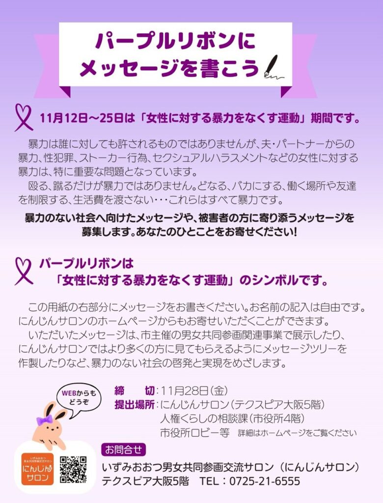 暴力のない社会へ向けたメッセージや、被害者の方に寄り添うメッセージを募集しています。