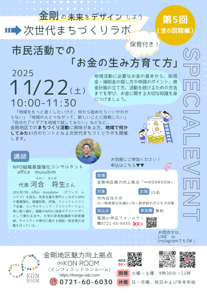 <次世代まちづくりラボ★市民活動でのお金の生み方育て方>(∞KON ROOM)