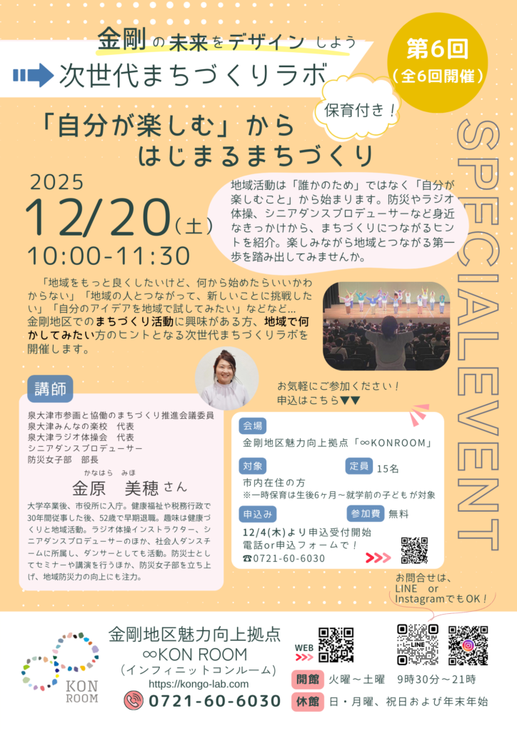 金剛地区でのまちづくり活動に興味がある方、地域で何かしてみたい方のヒントとなる次世代まちづくりラボを連続で開催。