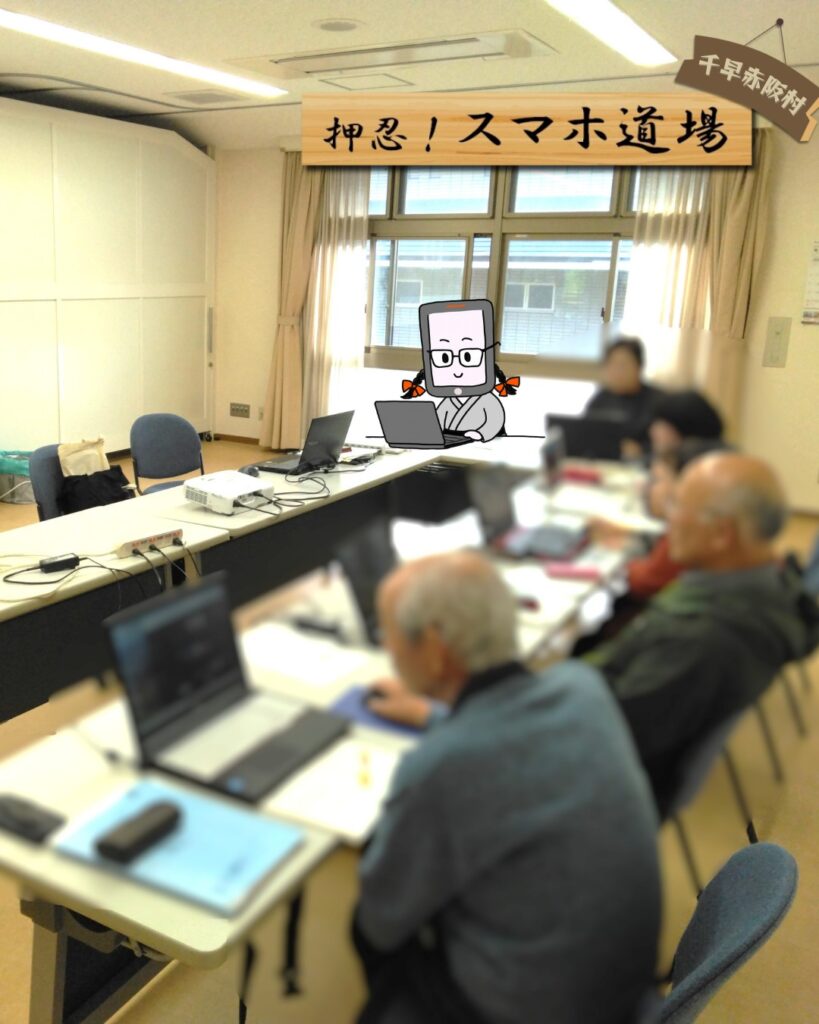 押忍!スマホ道場《出張道場 PCクラブ》は、いきいきサロンくすのき(千早赤阪村)で開催。