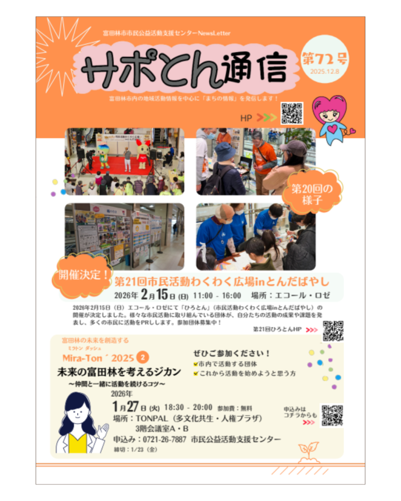 サポとん通信-第72号(富田林市市民公益活動支援センター)