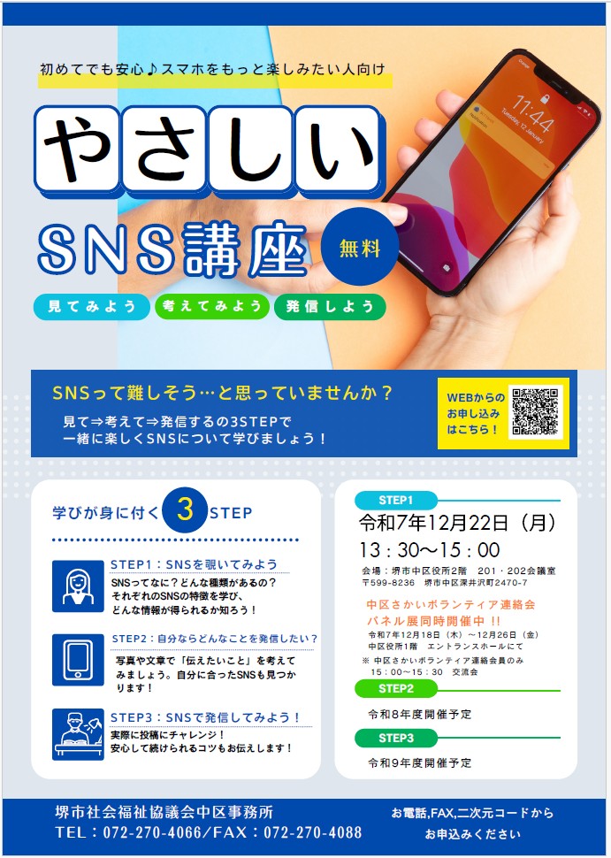 12/22、堺市社会福祉協議会中区事務所にて「やさしいSNS講座」を担当しました。