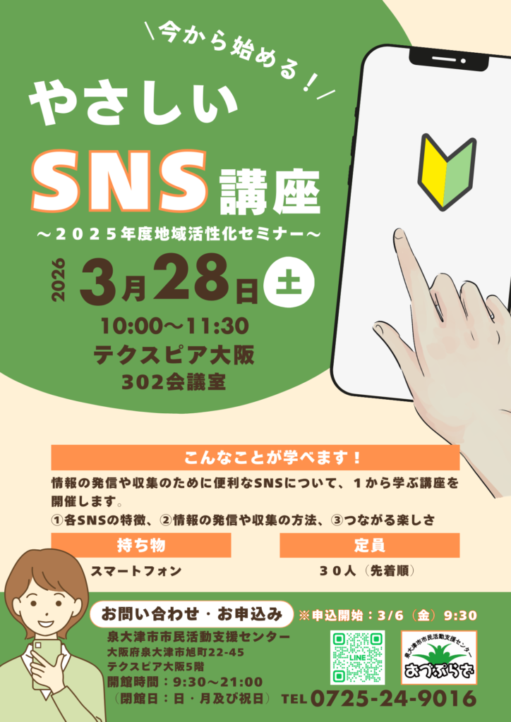 情報の発信や収集のために便利なSNSについて、1から学ぶ講座を開催します。
