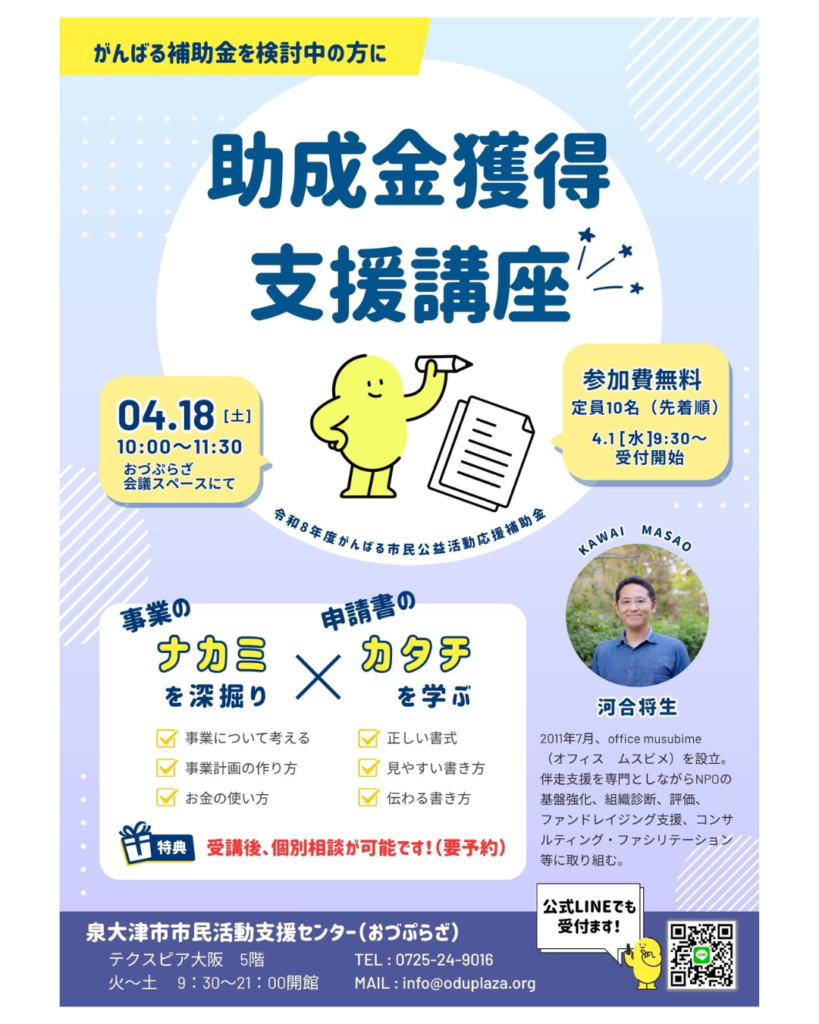 『助成金獲得支援講座』のお知らせ(おづぷらざ)