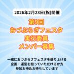 2025年9月24日 / 最終更新日時 : 2025年9月30日 senoo お知らせ 『第9回おづぷらざフェスタ・実行委員メンバー募集!!』 『第9回おづぷらざフェスタ・実行委員メンバー募集!!』2026年2月23日(祝)に市民公益活動をアピールする「おづぷらざフェスタ」を開催します!!詳細はこれから決定していきますが、まずは概要をお知らせします。●日時: 2 […]